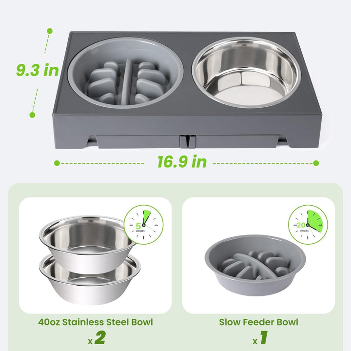 1. Comes with 2 dishwasher safe stainless steel bowls and 1 slow feeder bowl.